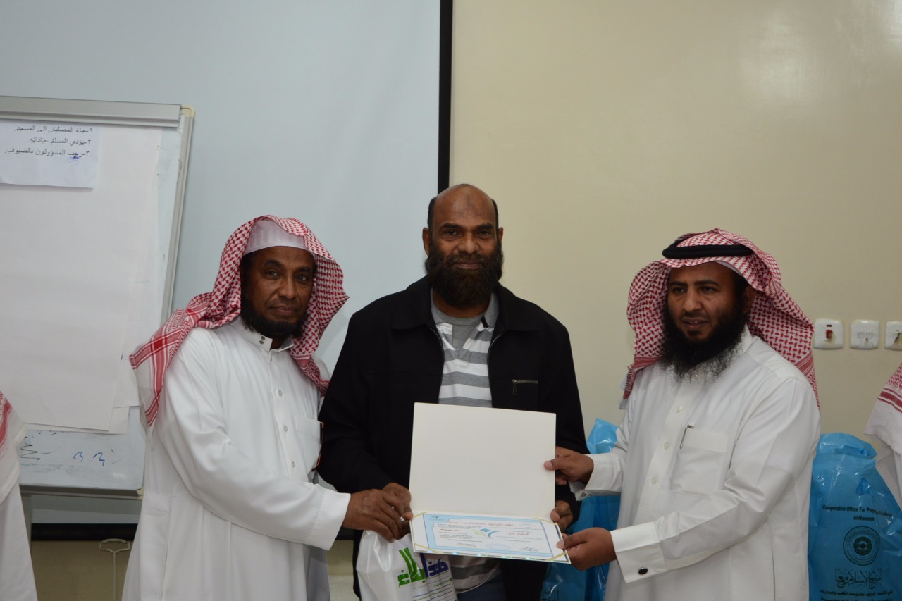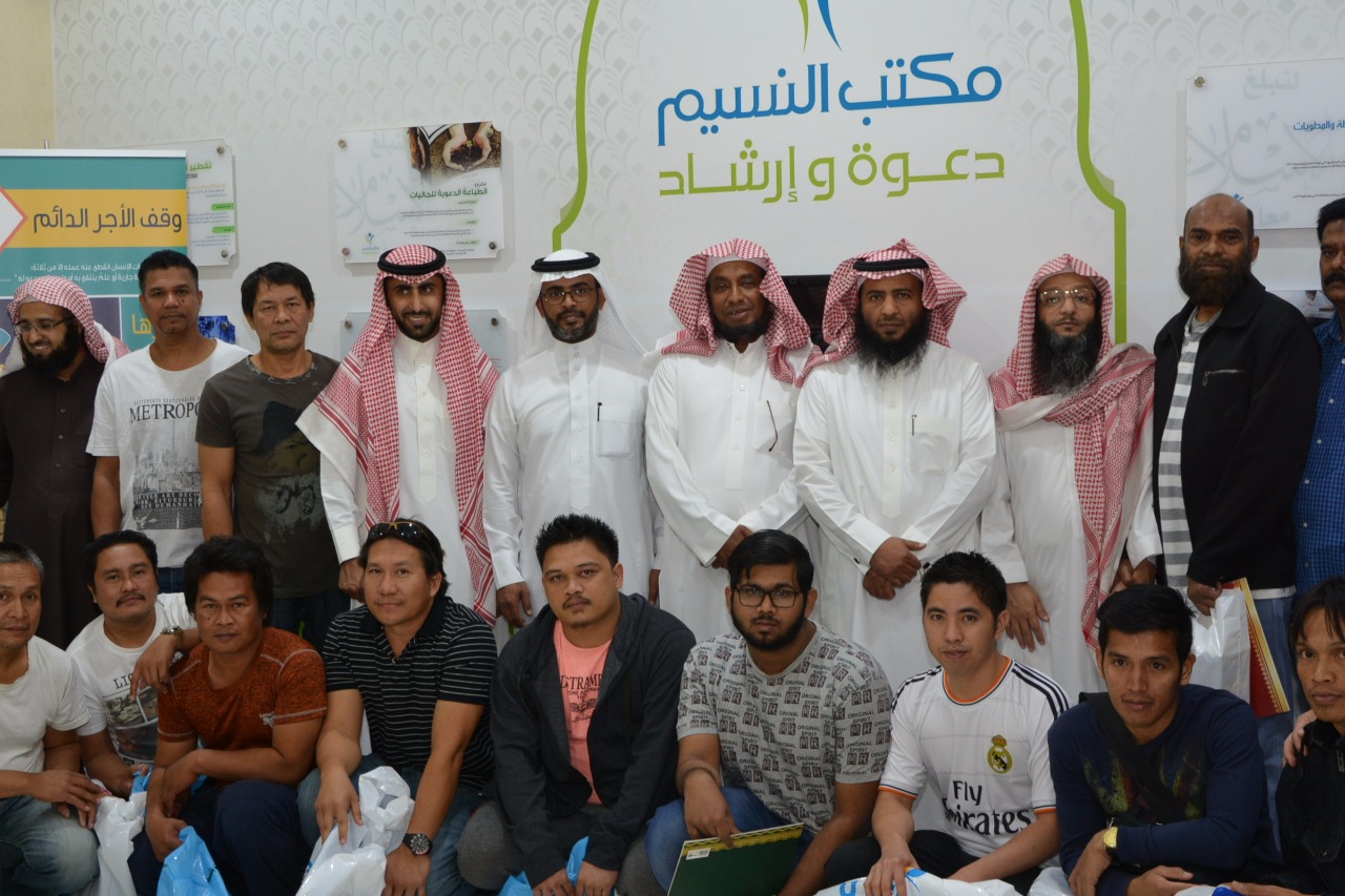 أقام مكتب الدعوة بالنسيم بالشراكة مع أوقاف الشيخ أحمد بن سلمان الفهاد وأولاده حفل تخريج الدفعة الأولى من الدورة الشرعية المقامة في مقر شركة الفهاد, وبلغ عدد الطلاب المشاركين 23 طالباً من عدة جنسيات . وقد حضر الحفل مدير عام مكتب الدعوة بالنسيم فضيلة الشيخ يوسف البرجس والمهندس صالح التويجري مدير الأوقاف في شركة الفهاد والمهندس فرحان المطرفي مدير مشروع العليا والسليمانية والأستاذ ماجد الغنام مدير الجاليات بالشركة. والجدير بالذكر أن الدورة الشرعية اشتملت على عدة علوم من: القران الكريم و الفقه واللغة العربية وقد أقيمت دورة خاصة بشرح كتاب (البعث نتيجة عقلية حتمية ) وهو من تأليف طاهر عبد السلام الداعية في مكتب الدعوة بالنسيم. بعد ذلك شكر المهندس صالح التويجري والمهندس فرحان المطرفي إدارة مكتب الدعوة بالنسيم على جهودهم المبذولة لدعوة عمال الشركة لما رأوه من نماذج لطلاب الدورة من تميز.